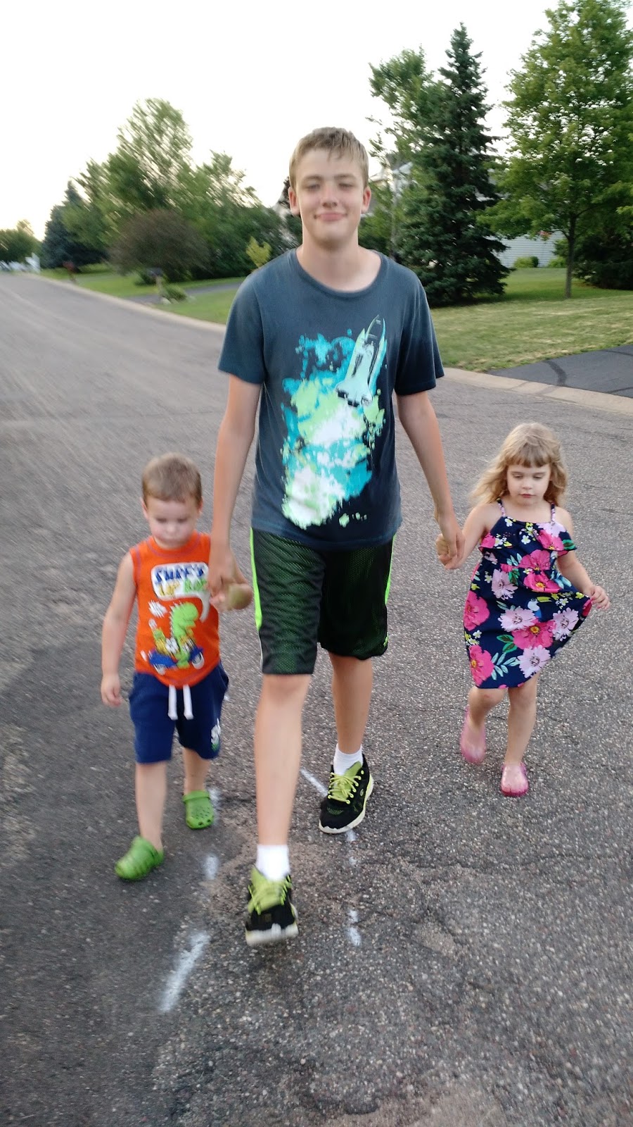 After the water balloons, we went for a walk in the neighborhood. Everyone wanted to hold Ethan's hand, so I was left with the job of the taking the picture.